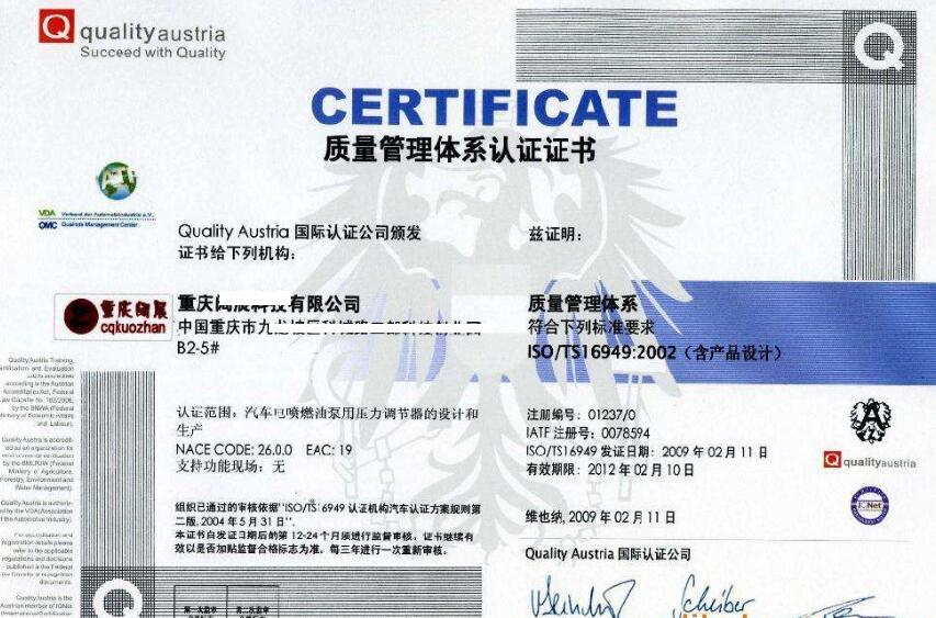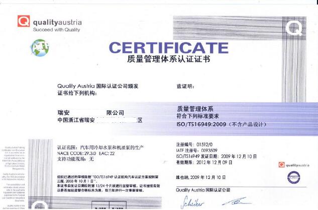 TS16949質量體系認證是國際標準化組織(ISO)于2002年3月公布了一項行業性的質量體系要求,它的全名是“質量管理體系—汽車行業生產件與相關服務件的組織實施ISO9001的特殊要求”,英文為ISO/TS16949,現已更名為IATF16949。